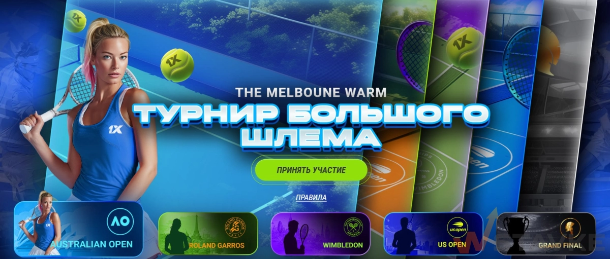 Акция «Турнир Большого шлема» от 1xBet — отличная возможность совместить любовь к теннису с шансом выиграть серьёзные призы. Пять розыгрышей за сезон, гарантированные фрибеты до 300 USD и главный приз 10000 USD в финале. Зарегистрируйтесь сейчас, активируйте промокод 1xBet для максимального бонуса и начинайте собирать билеты уже с Australian Open 2026!